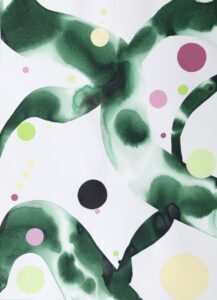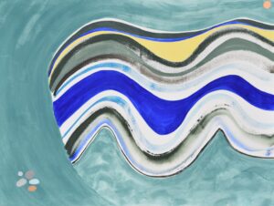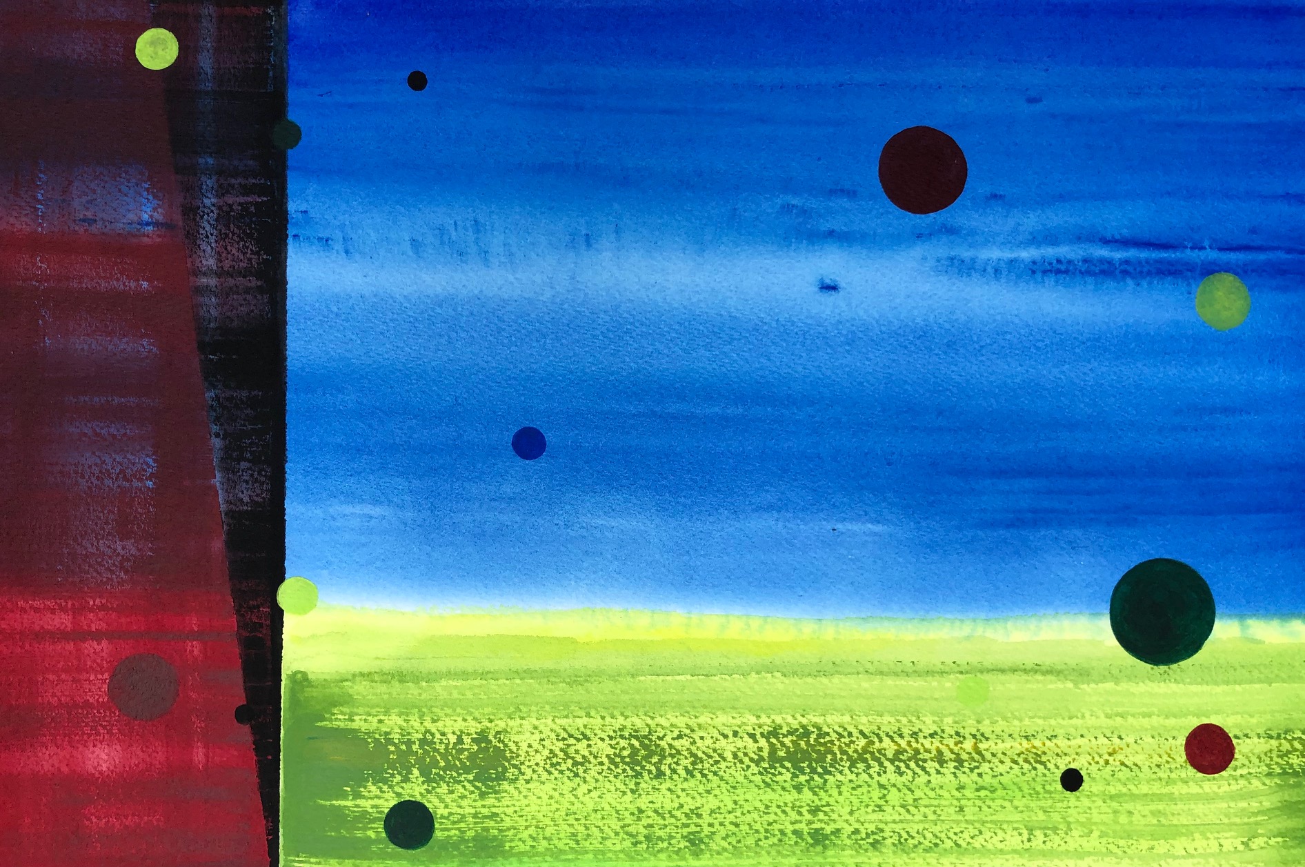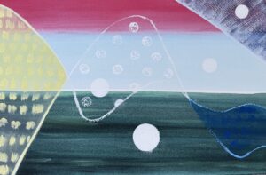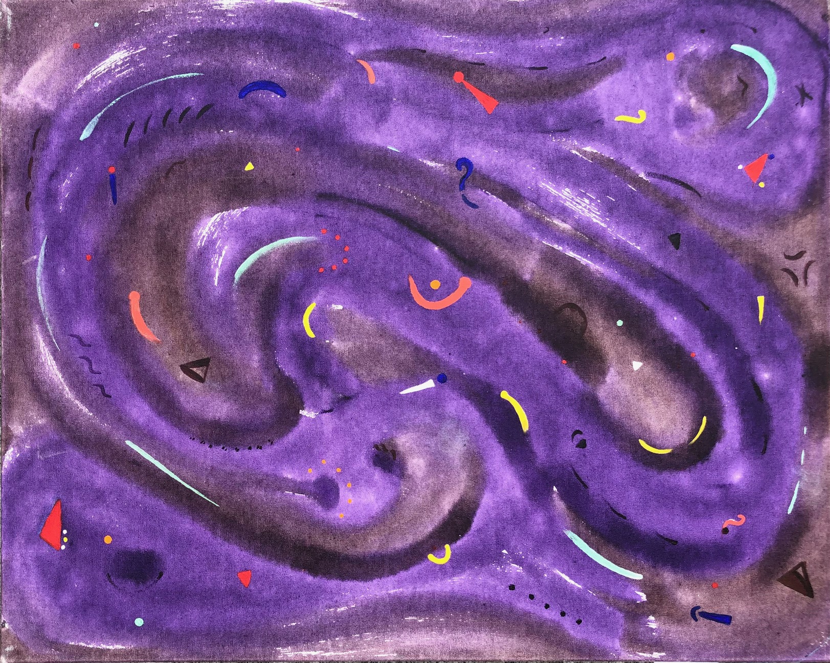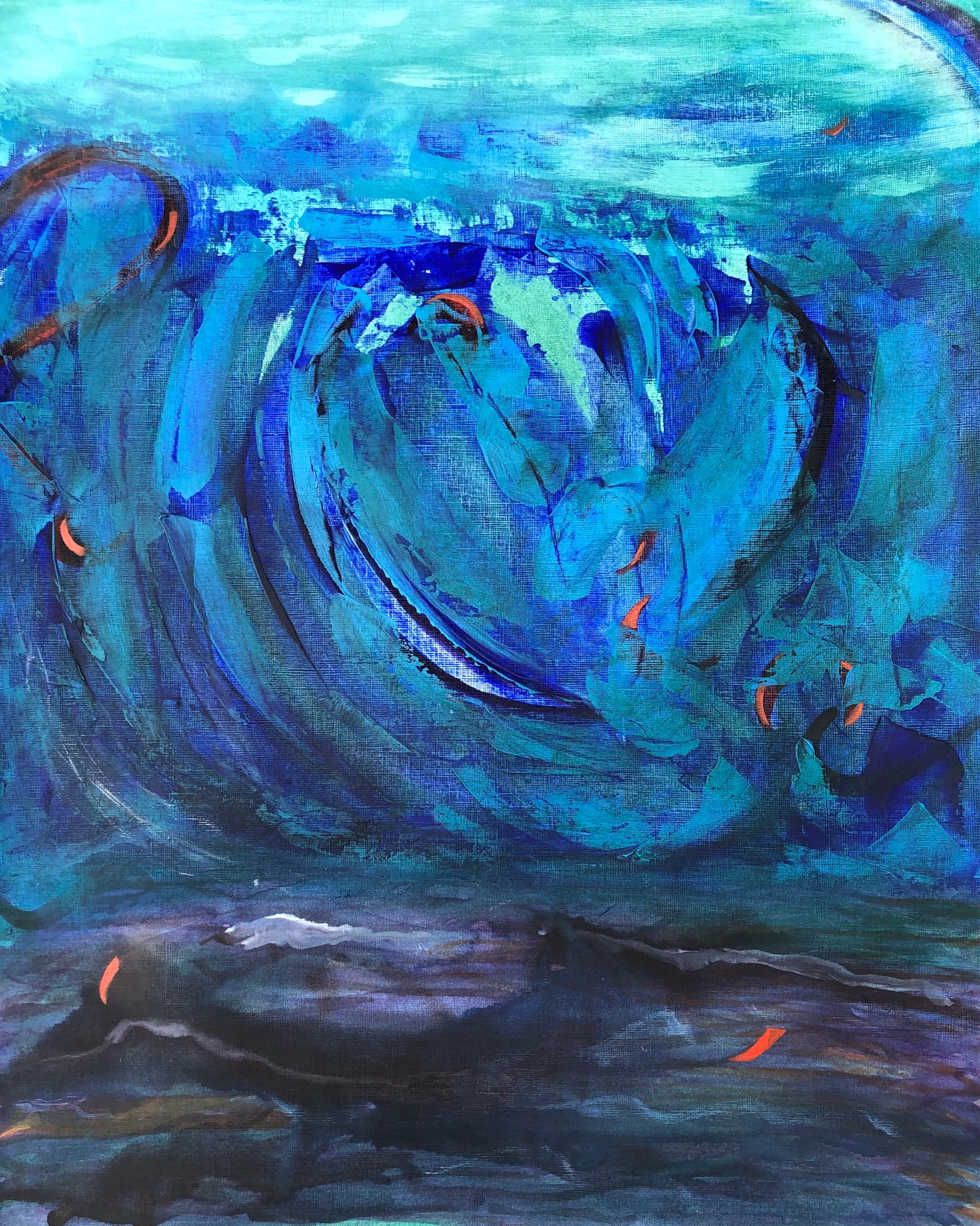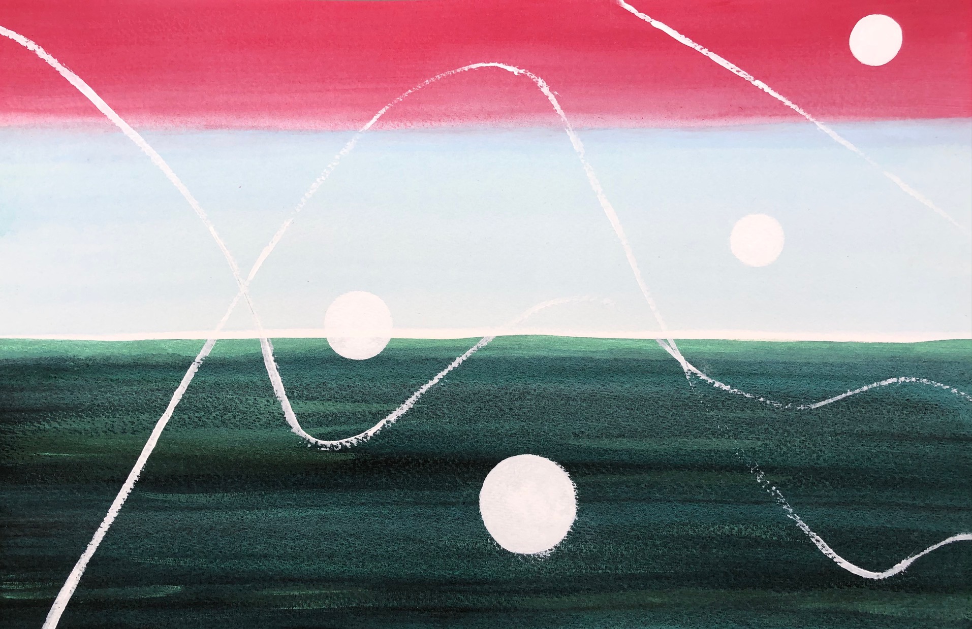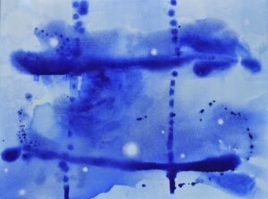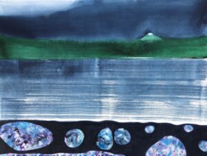 This painting is in acrylic and interference paint on watercolour paper. It evokes wonderment.